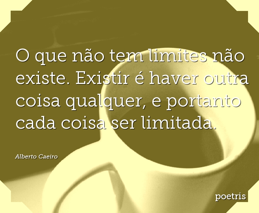 O que não tem limites não existe. Existir é haver outra coisa qualquer, e portanto cada coisa ser limitada.