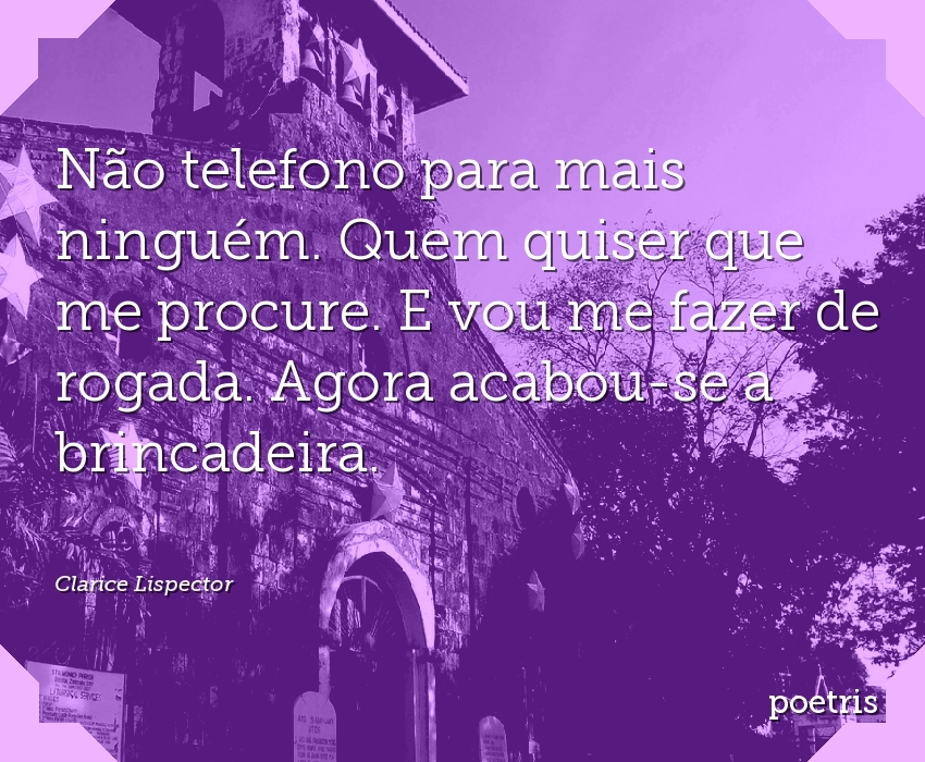 Não telefono para mais ninguém. Quem quiser que me procure. E vou me fazer de rogada. Agora acabou-se a brincadeira.