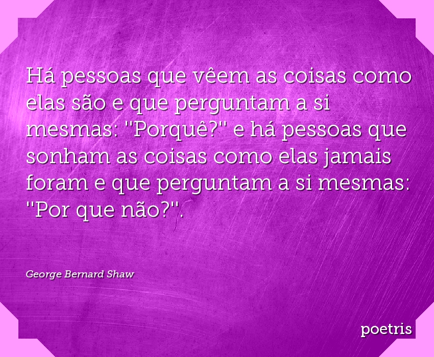 Há pessoas que vêem as coisas como elas são e que perguntam a si mesmas: ”Porquê?” e há pessoas que sonham as coisas como elas jamais foram e que perguntam a si mesmas: ”Por que não?”.