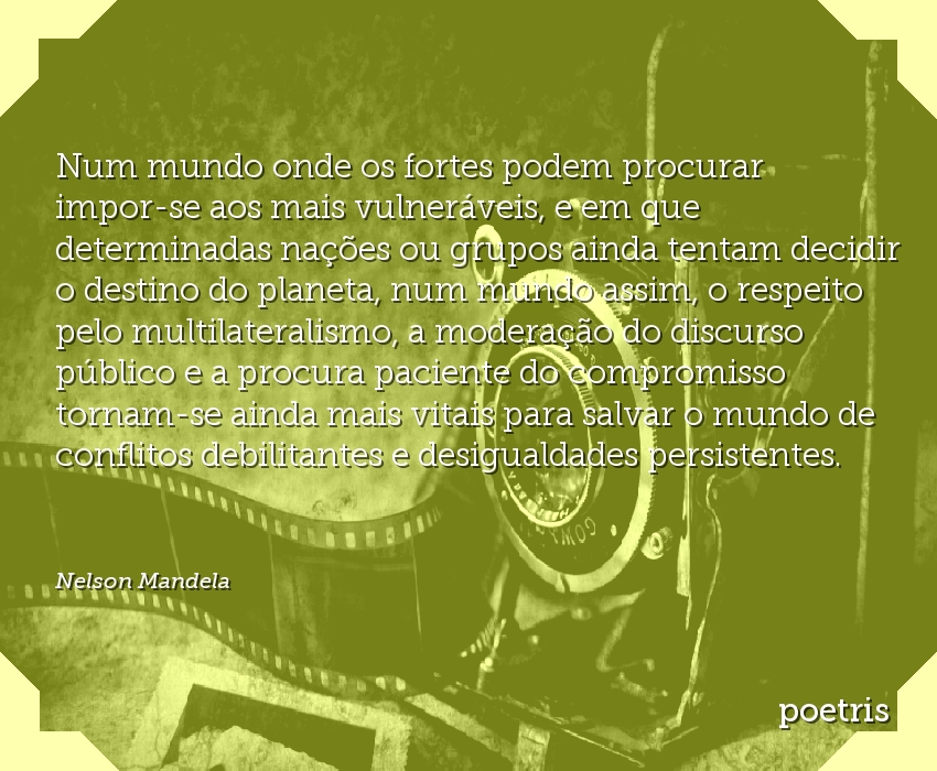 Num mundo onde os fortes podem procurar impor-se aos mais vulneráveis, e em que determinadas nações ou grupos ainda tentam decidir o destino do planeta, num mundo assim, o respeito pelo multilateralismo, a moderação do discurso público e a procura paciente do compromisso tornam-se ainda mais vitais para salvar o mundo de conflitos debilitantes e desigualdades persistentes.