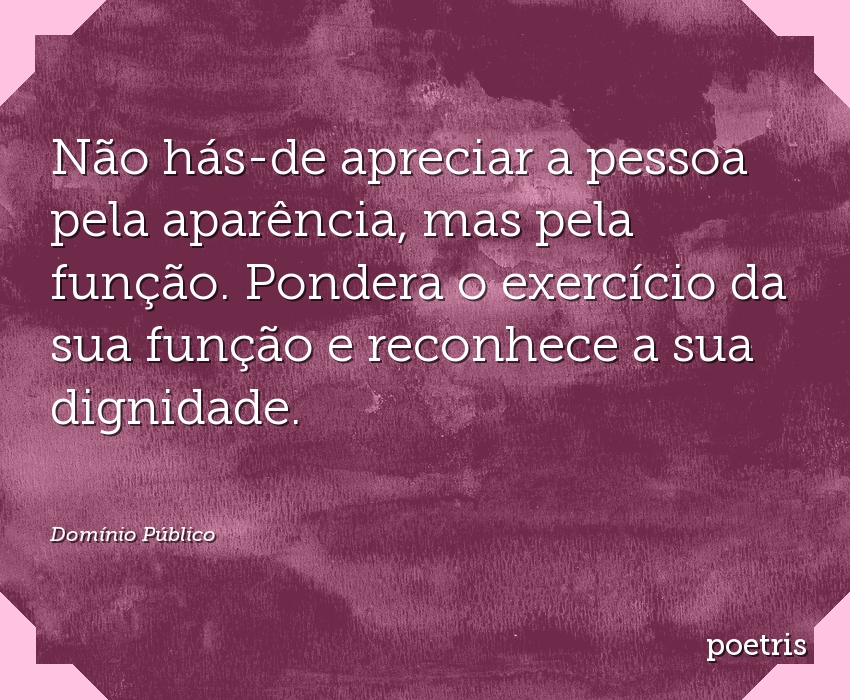 Não hás-de apreciar a pessoa pela aparência, mas pela funçãoNão hás-de apreciar a pessoa pela aparência, mas pela função. Pondera o exercício da sua função e reconhece a sua dignidade.