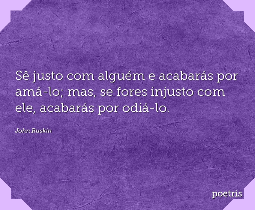 Sê justo com alguém e acabarás por amá-lo; mas, se fores injusto com ele, acabarás por odiá-lo.