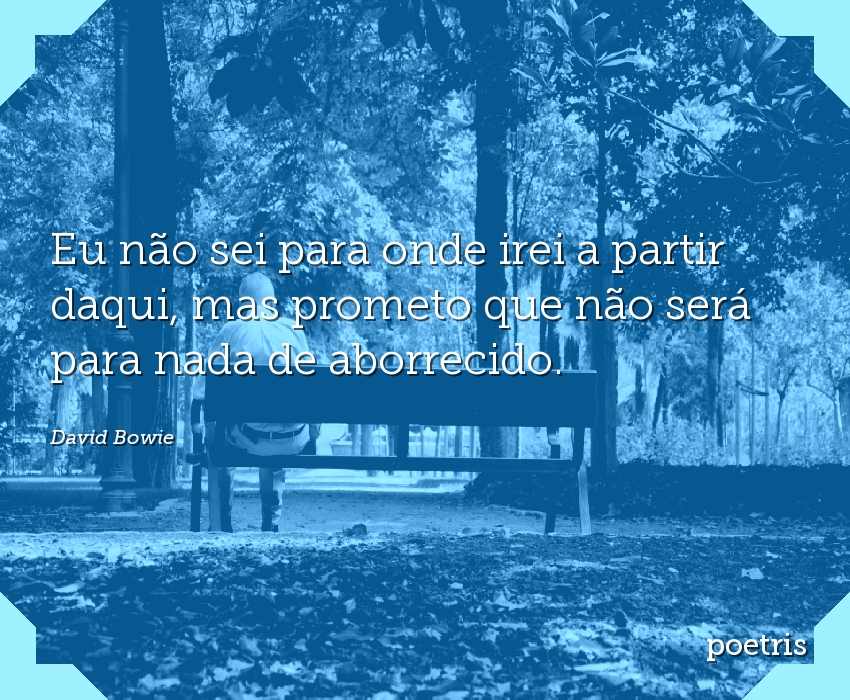 Eu não sei para onde irei a partir daqui, mas prometo que não será para nada de aborrecido.