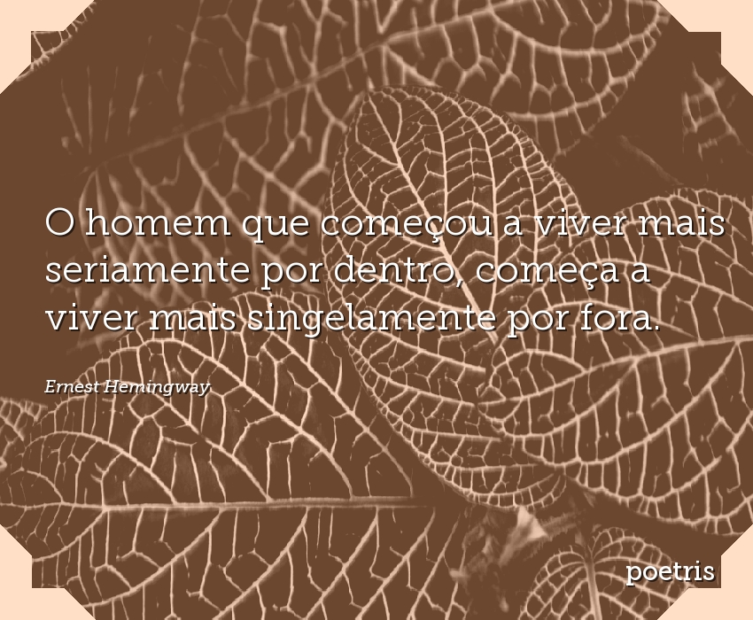 O homem que começou a viver mais seriamente por dentro, começa a viver mais singelamente por fora.