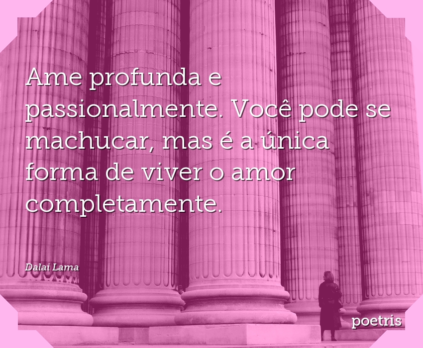 Ame profunda e passionalmente. Você pode se machucar, mas é a única forma de viver o amor completamente.