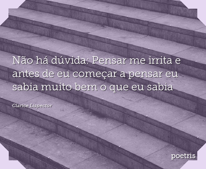 Não há dúvida: Pensar me irrita e antes de eu começar a pensar eu sabia muito bem o que eu sabia