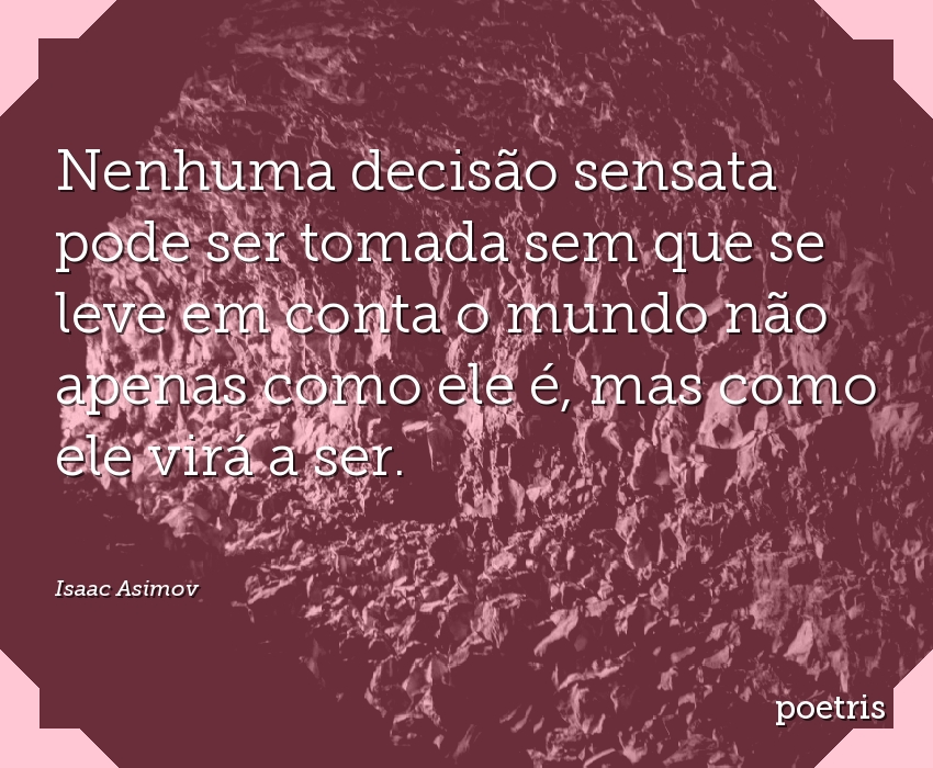 Nenhuma decisão sensata pode ser tomada sem que se leve em conta o mundo não apenas como ele é, mas como ele virá a ser.