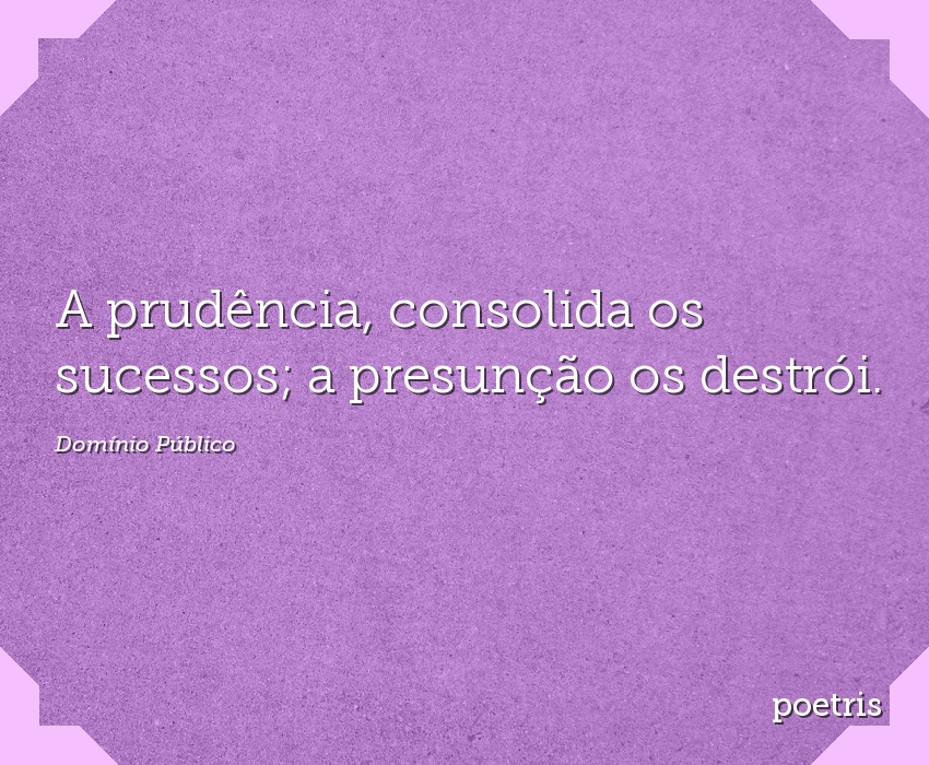 A prudência, consolida os sucessos; a presunção os destrói.