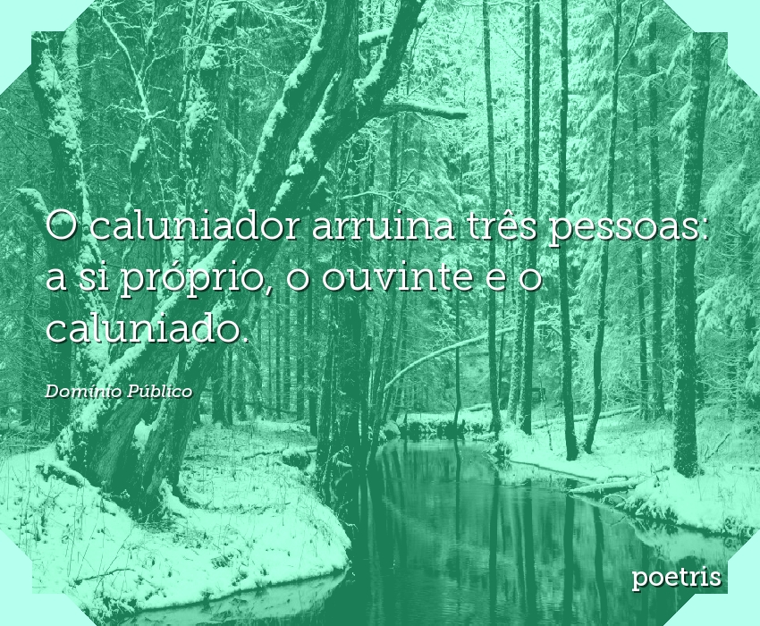 O caluniador arruina três pessoas: a si próprio, o ouvinte e o caluniadoO caluniador arruina três pessoas: a si próprio, o ouvinte e o caluniado.