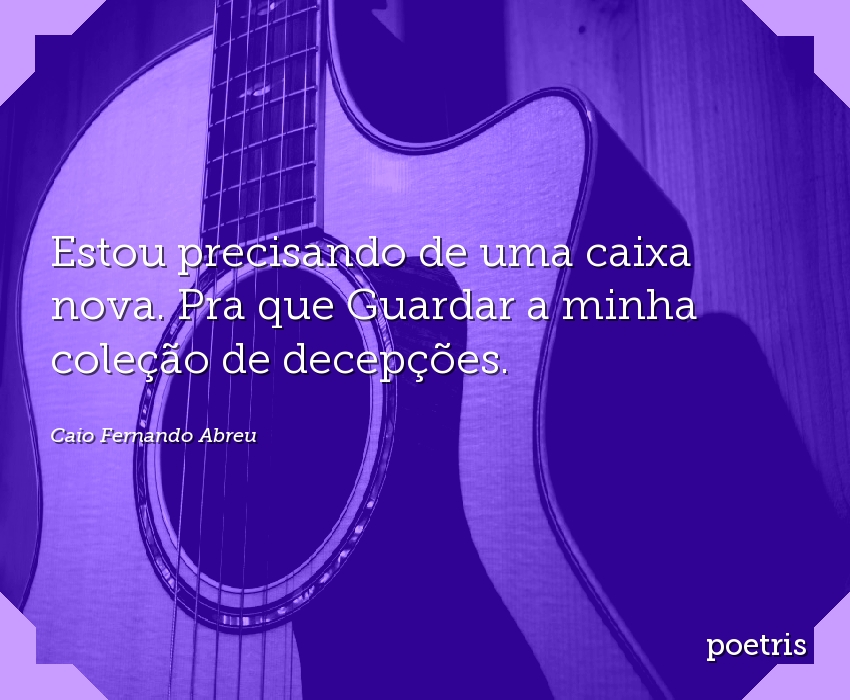 Estou precisando de uma caixa nova. Pra que Guardar a minha coleção de decepções.