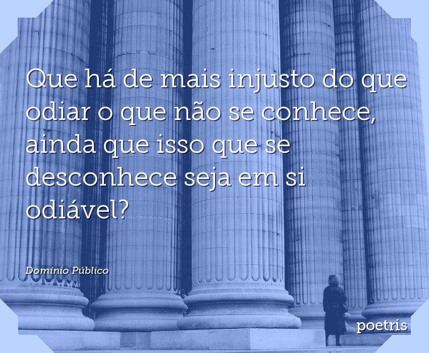 Que há de mais injusto do que odiar o que não se conheceQue há de mais injusto do que odiar o que não se conhece, ainda que isso que se desconhece seja em si odiável?