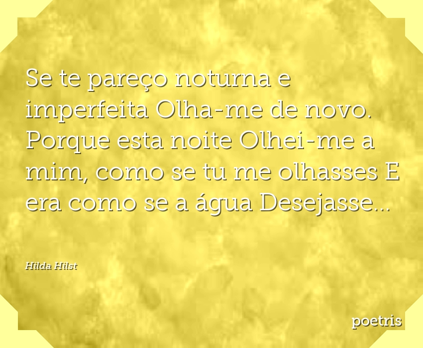 Se te pareço noturna e imperfeita Olha-me de novo. Porque esta noite Olhei-me a mim, como se tu me olhasses E era como se a água Desejasse…