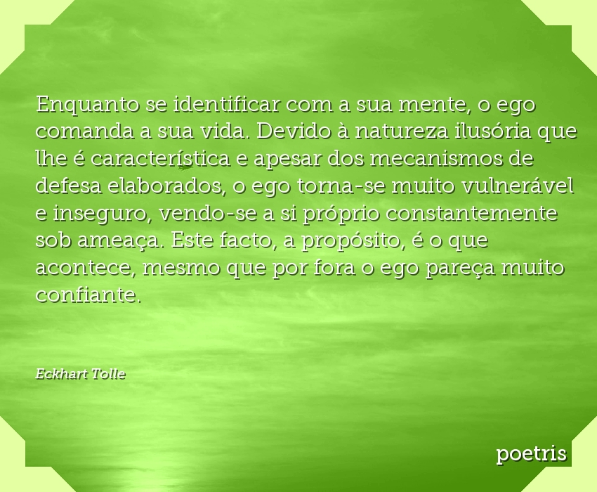 Enquanto se identificar com a sua mente, o ego comanda a sua vida. Devido à natureza ilusória que lhe é característica e apesar dos mecanismos de defesa elaborados, o ego torna-se muito vulnerável e inseguro, vendo-se a si próprio constantemente sob ameaça. Este facto, a propósito, é o que acontece, mesmo que por fora o ego pareça muito confiante.