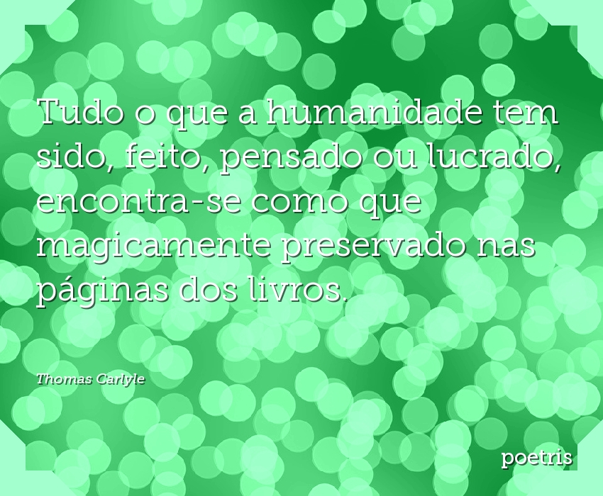 Tudo o que a humanidade tem sido, feito, pensado ou lucrado, encontra-se como que magicamente preservado nas páginas dos livros.