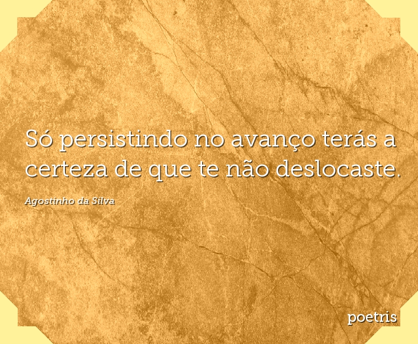 Só persistindo no avanço terás a certeza de que te não deslocaste.