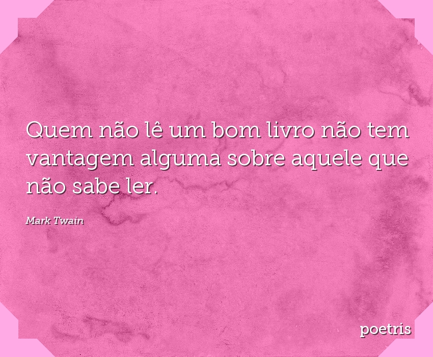 Quem não lê um bom livro não tem vantagem alguma sobre aquele que não sabe ler.