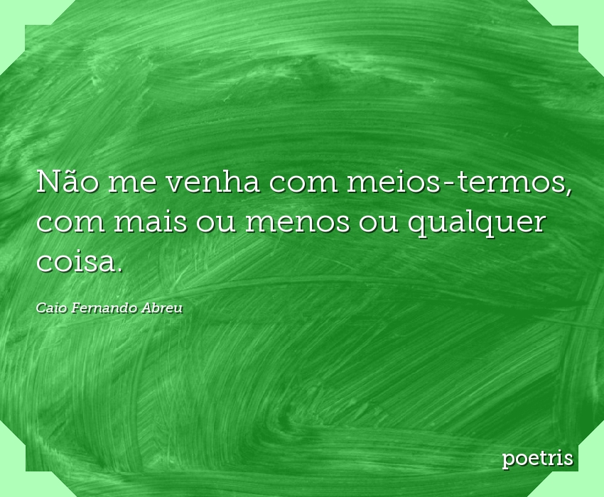 Não me venha com meios-termos, com mais ou menos ou qualquer coisa.