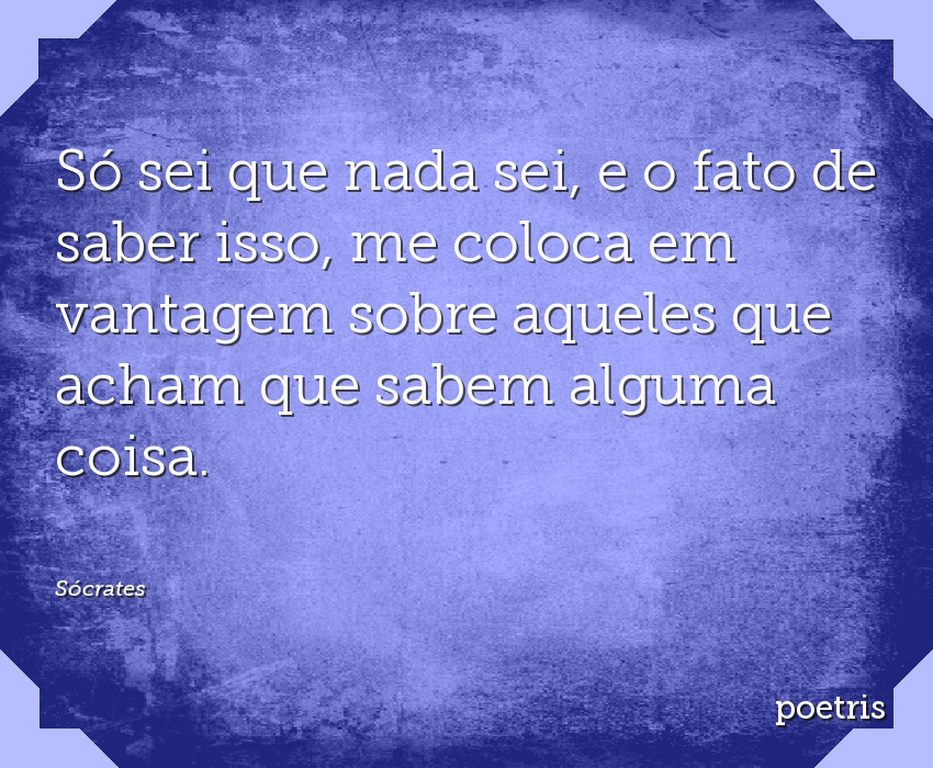 Só sei que nada sei, e o fato de saber isso, me coloca em vantagem sobre aqueles que acham que sabem alguma coisa.