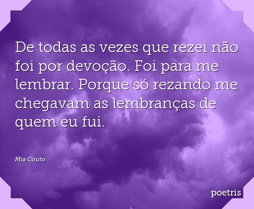De todas as vezes que rezei não foi por devoção. Foi para me lembrar. Porque só rezando me chegavam as lembranças de quem eu fui.