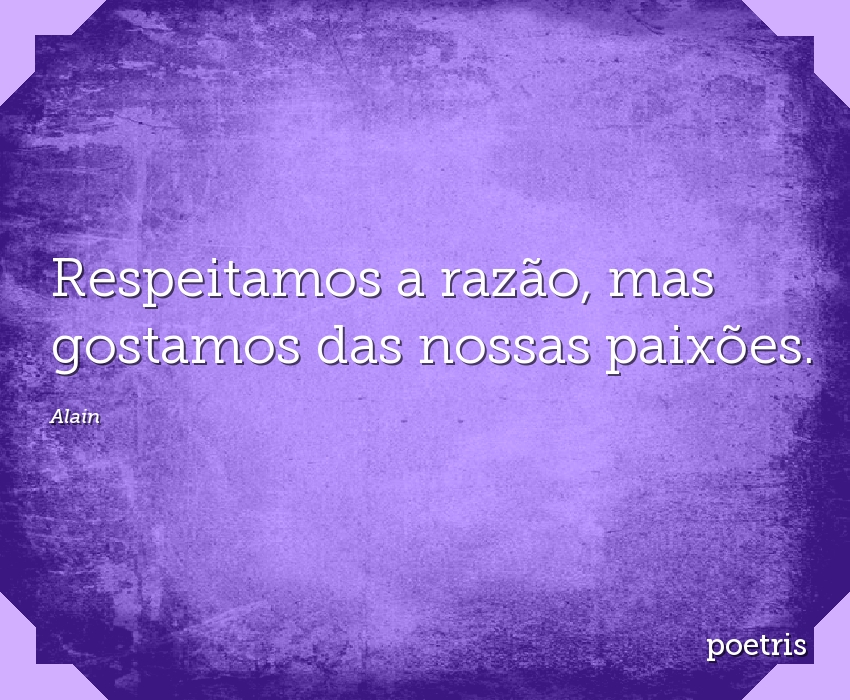 Respeitamos a razão, mas gostamos das nossas paixões.