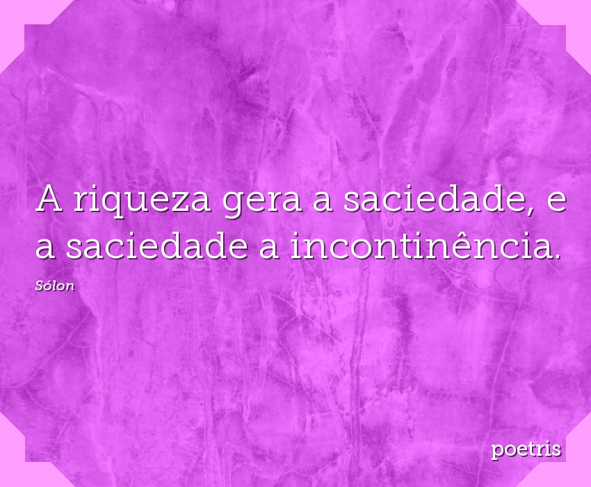 A riqueza gera a saciedade, e a saciedade a incontinência.
