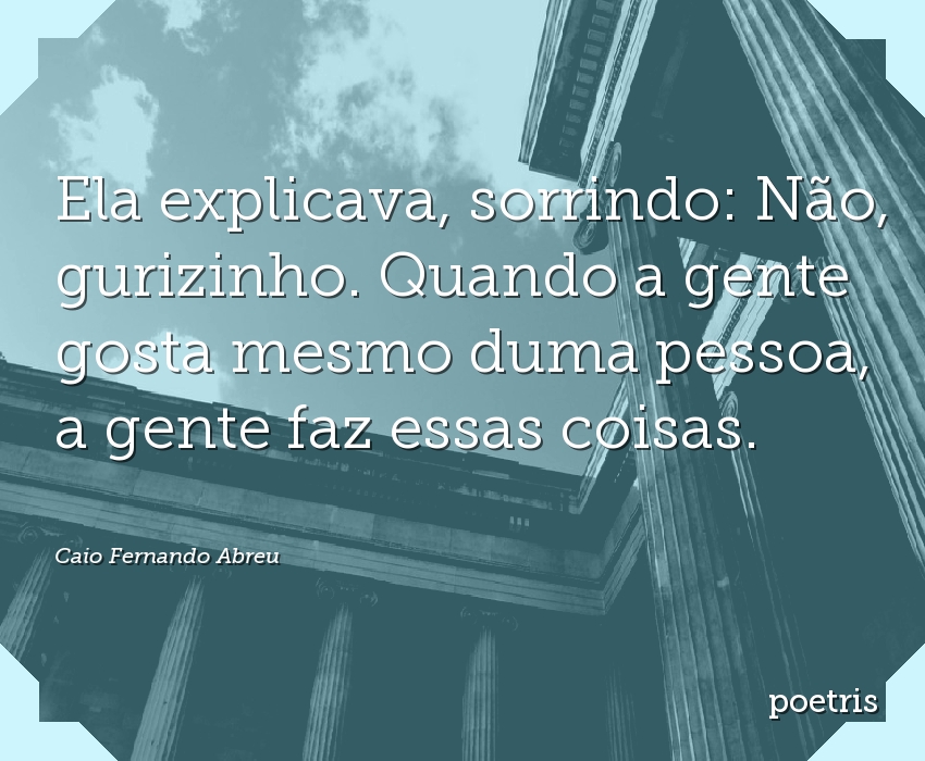 Ela explicava, sorrindo: Não, gurizinho. Quando a gente gosta mesmo duma pessoa, a gente faz essas coisas.