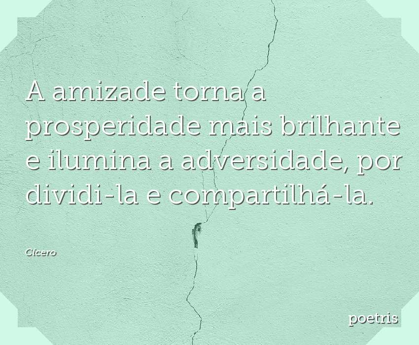 A amizade torna a prosperidade mais brilhante e ilumina a adversidade, por dividi-la e compartilhá-la.