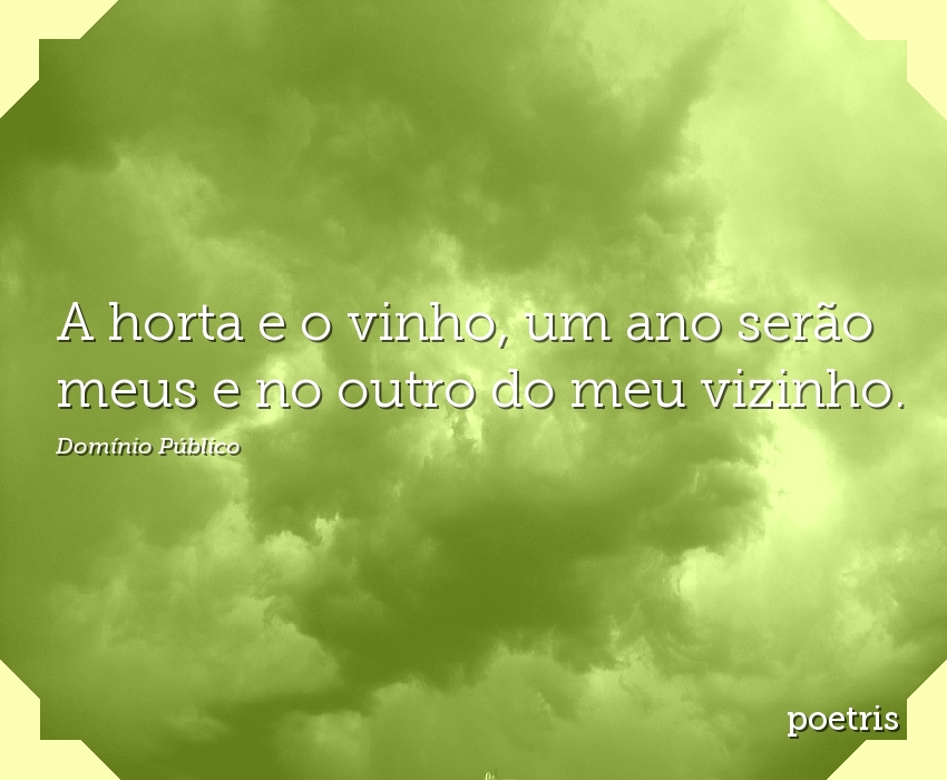 A horta e o vinho, um ano serão meus e no outro do meu vizinho.