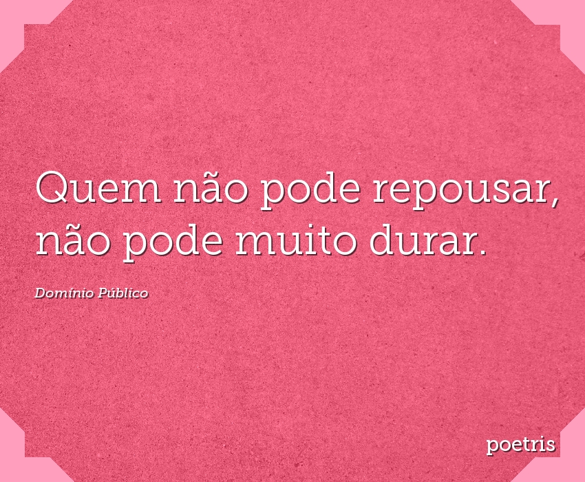 Quem não pode repousar, não pode muito durar.