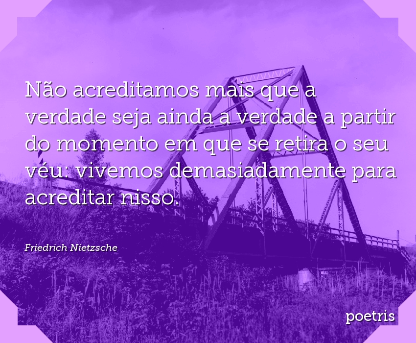Não acreditamos mais que a verdade seja ainda a verdade a partir do momento em que se retira o seu véu: vivemos demasiadamente para acreditar nisso.