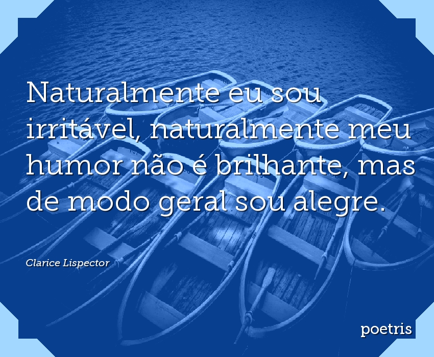 Naturalmente eu sou irritável, naturalmente meu humor não é brilhante, mas de modo geral sou alegre.