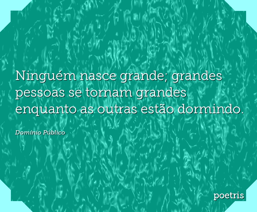 Ninguém nasce grande; grandes pessoas se tornam grandes enquanto as outras estão dormindo.
