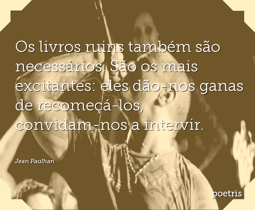 Os livros ruins também são necessários. São os mais excitantes: eles dão-nos ganas de recomeçá-los, convidam-nos a intervir.