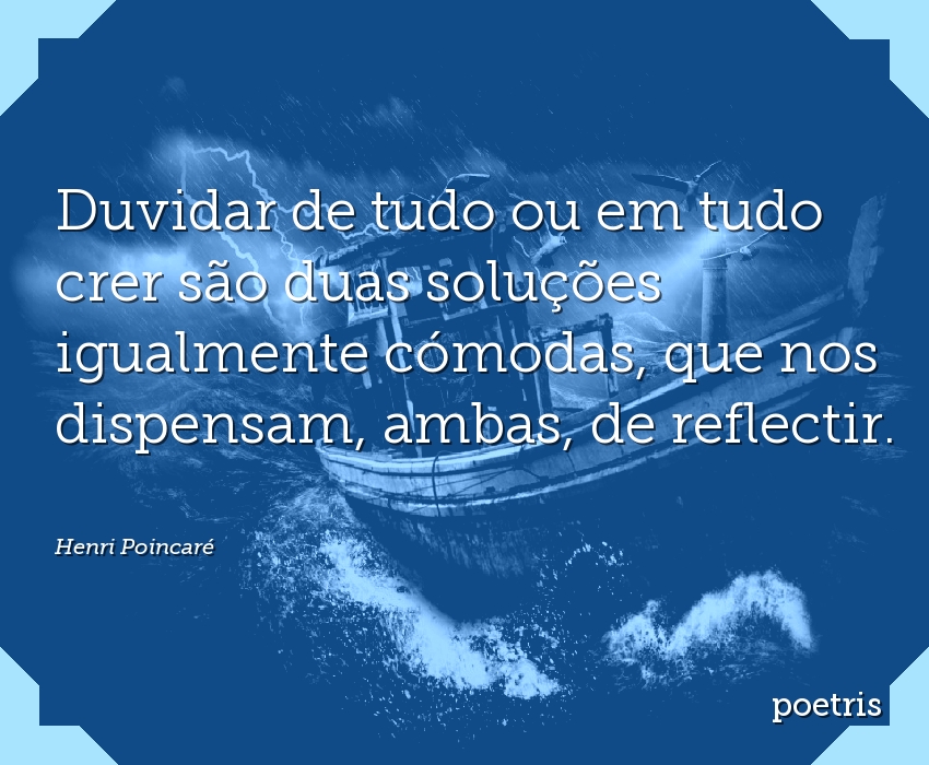Duvidar de tudo ou em tudo crer são duas soluções igualmente cómodas, que nos dispensam, ambas, de reflectir.