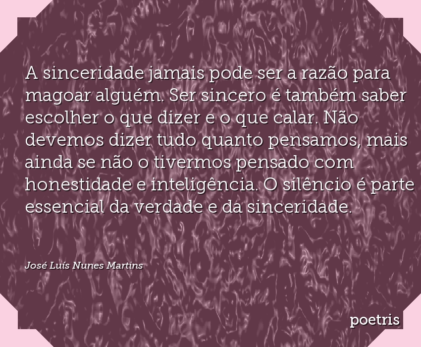- Frases sobre Sinceridade de José Luís Nunes Martins