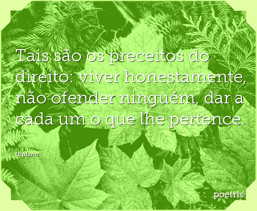 Tais são os preceitos do direito: viver honestamente, não ofender ninguém, dar a cada um o que lhe pertence.