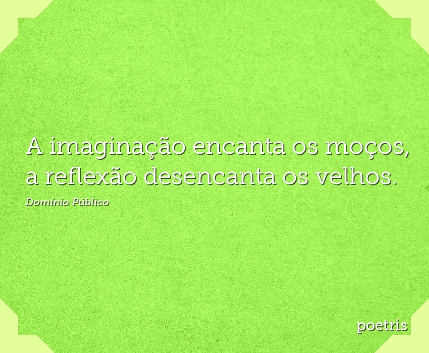 A imaginação encanta os moços, a reflexão desencanta os velhos.
