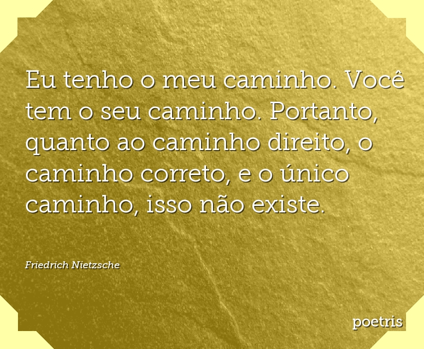 Eu tenho o meu caminho. Você tem o seu caminho. Portanto, quanto ao caminho direito, o caminho correto, e o único caminho, isso não existe.