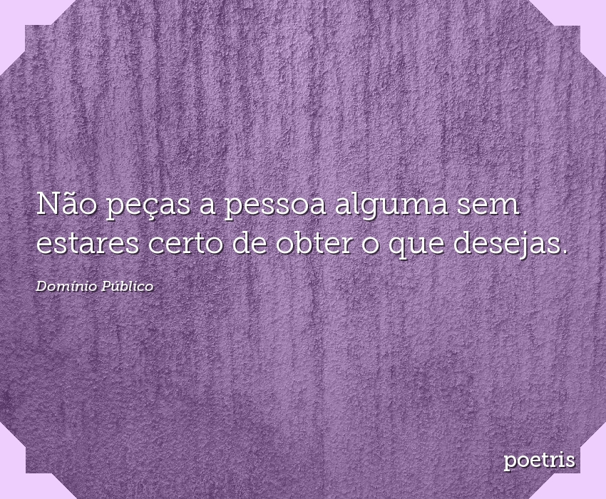 Não peças a pessoa alguma sem estares certo de obter o que desejas.