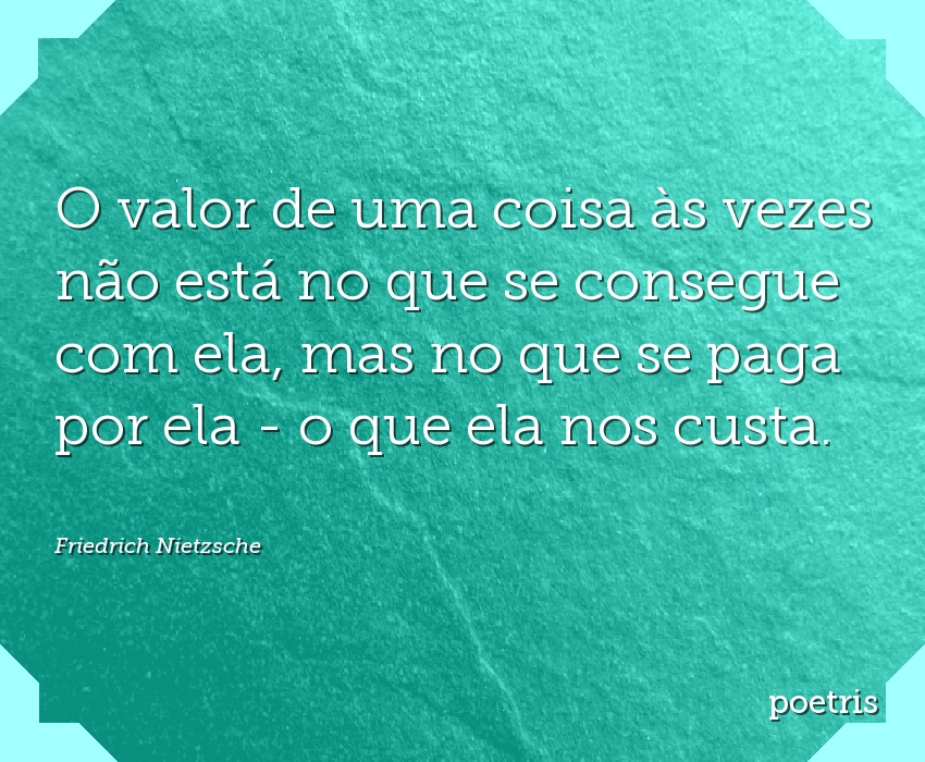 O valor de uma coisa às vezes não está no que se consegue com ela, mas no que se paga por ela – o que ela nos custa.